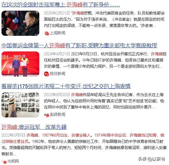 在他的指导下,李对红、陶璐娜等一批优秀射击运动员迅速成长。陶璐娜在2000年悉尼奥运会上夺得金牌,算是接过了许海峰的衣钵。
