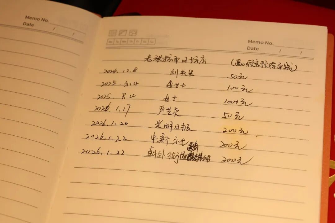 从2024年开始,这份温暖开始扩散。挂在店内写着“爱心账本”的小黑板,和柜台上一本磨旧的笔记本,记录着首都市民“存面”的温情。“2024年12月8日,刘先生预存面钱50元;2025年3月14日,李女士100元……”