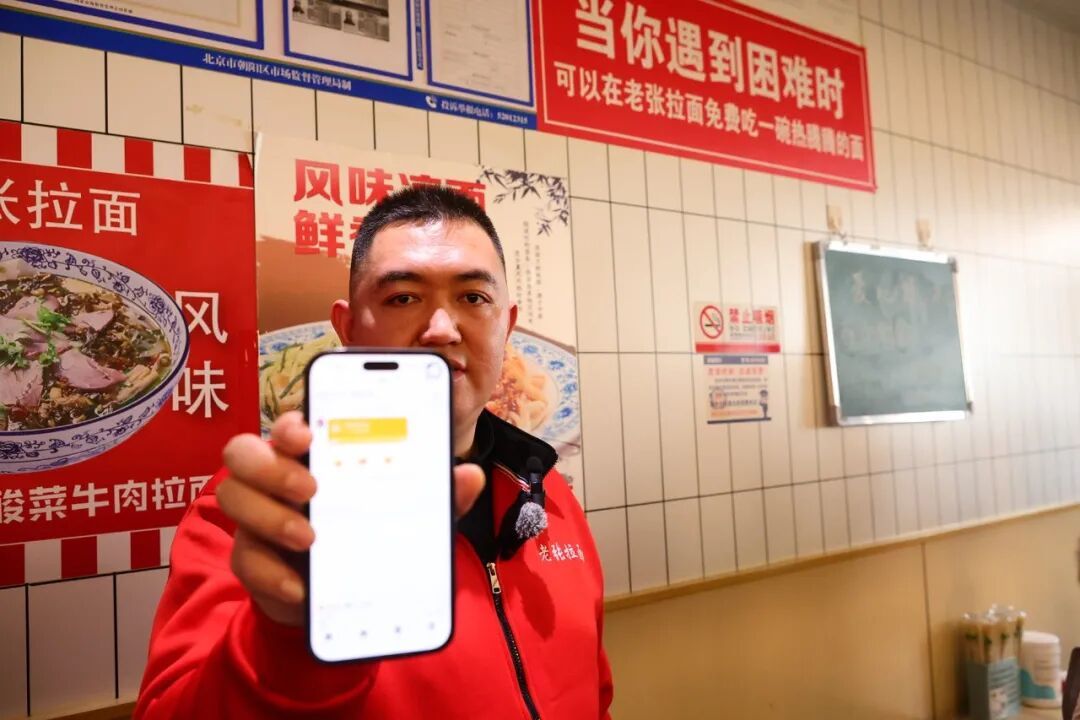 那碗热面,让成奶仓记了很久。这份温暖,也成为他日后开店的初心。2018年,成奶仓在工体附近开了第一家老张拉面馆,遇到有困难的人免费提供一碗热腾腾的拉面成了店里不成文的规矩。2023年,他在日坛北门开第二家店时,免费吃饭的提示仍然雷打不动地贴在门口的玻璃上。